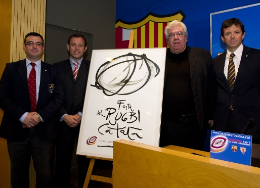 El Camp Nou acogió la presentación de la fiesta de rugby catalán, promoviendo el partido del próximo 9 de abril en el Estadio Olímpico Lluís Companys de cuartos de final de la Heineken Cup entre la USAP y el RC Toulon. En la presentación Ignasi Planas, Sandro Rosell, Paul Gozé y Ramón Cierco.