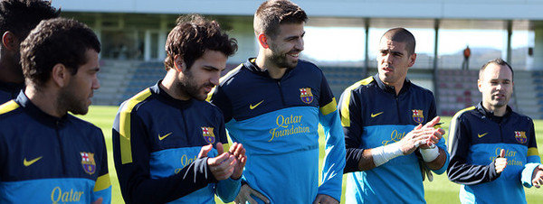 Piqué se llevó la ovación del entrenamiento, los compañeros le felicitaron por su recuperación y esperamos que vuelva al nivel que estaba antes de la lesión.