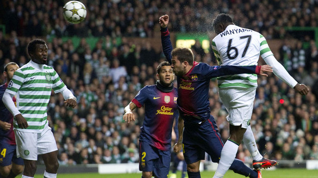 El Barça no puede con el muro escocés y pierde 2-1 en Celtic Park ante el Celtic de Glasgow. Partido dominado por el Barcelona con juego, posesión, pero sin remate, el Celtic dos disparos a puerta dos goles. Cerrojazo atrás y salidas a la contra, lo habitual en los partidos contra el Barça. Normalmente para abrir estos partidos es importante abrir la lata, pero si el equipo está un poco espeso en ataque y no encuentra los huecos necesarios, el partido se complica. Messi y Alexis se toparon con el palo después del gol de Wanyama que llegó a rematar un corner en el segundo palo, 1-0. El Barça sufre a balón parado y faltas laterales, nuestra media es de 1,70 y jugamos contra torres de 1,80. Hay que hacer algo diferente para defender estas jugadas.